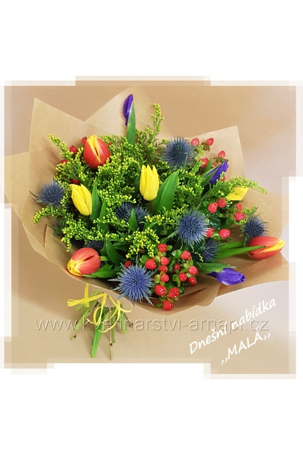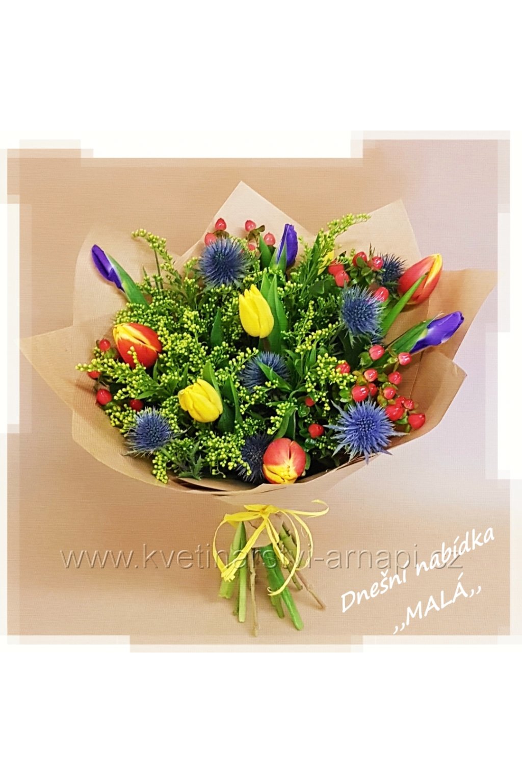 tulipány, irisy, třezalka, zeleň
